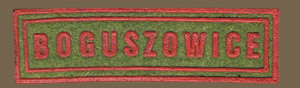 Tarcza z herbem Boguszowic oraz napis : BOGUSZOWICE noszone na lewym ramieniu munduru