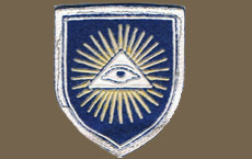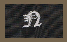 2. Na lewej kieszeni plakietka szczepu: biało wyszywana lilijka ze stopką na czarnym okręgu