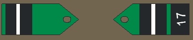 1. 0,5 cm nad prawą kieszenią biało – czarna naszywka z czerwonym obszyciem i napisem „ŚLADY”, dla instruktorów ze złotym obszyciem i napisem